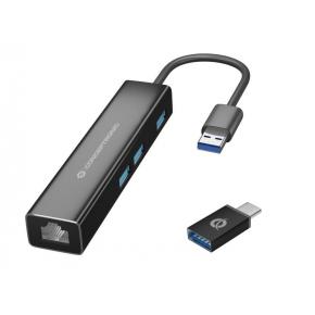 Conceptronic DONN07BA USB 3.2 Gen 1 Type-A, 10,100,1000 Mbit/s, Black, RJ45, USB 3.2 Gen 1 Type-A USB & firewire/ USB hub